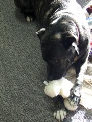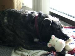 Here is Guinness enjoying his new furry buddy a little Hippo 1600 x 1200 1024 x 768 640 x 480 |