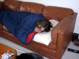 After a successful party, Scott relaxes on the couch. Rumor has it that he already is planning on spending a lot of time on the couch this week to recover. |