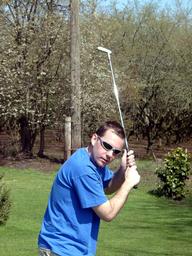 Here Scott shows us just how to properly hold a putter. I think that this might explain why our scores were not all that good. |
